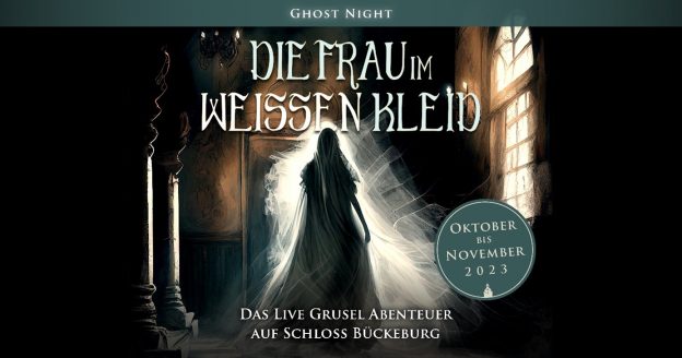 Die Ghost Night ist eine interaktive Schlossführung, in der Ihr die Legende der Frau im weißen Kleid live erlebt. Ihr taucht tief in die Geschichte ein, müsst mit unseren Darstellern interagieren, diverse Aufgaben erfüllen und werdet so Teil der Legende. Es wird eine Nacht voller Spannung und Schauder sein, die Ihr nicht verpassen dürft!